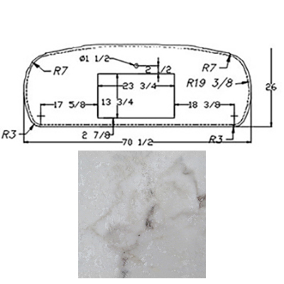 Countertop - Kitchen Island Top - 265RBI - 70 1/2" x 26" - Pressed - Calacutta Warm
