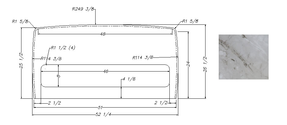 Countertop - Entertainment Center Top - 26 1/2" x 52 1/4" - C2 - WW04 - w/Buildup - Baha Quartz - Top 130-2143
