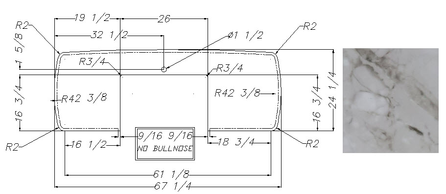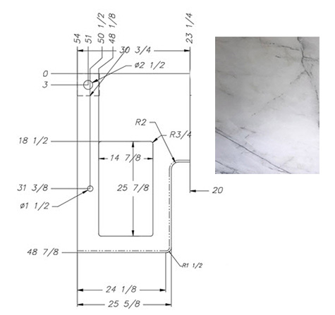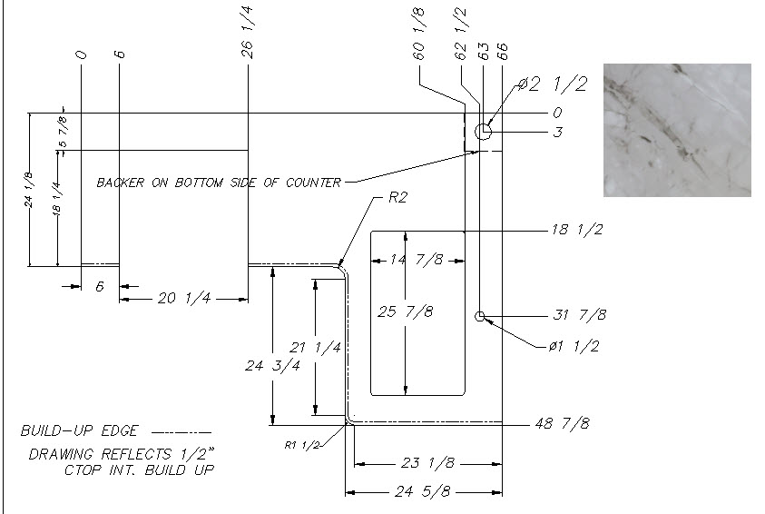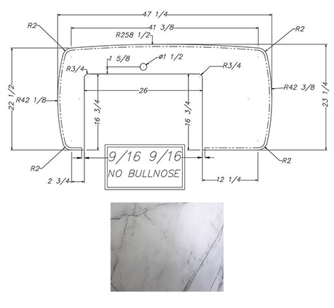 Countertop - Kitchen Top - 1 1/4" x 32.848" x 48 7/8" - w/Sink Cutout - C2 - WW04 - w/Buildup - Baha Quartz - Top 130-2156-um
