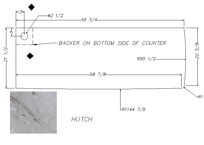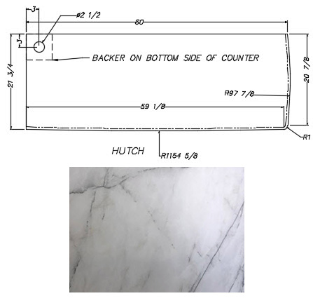 Countertop - Hutch Top - 21.892" x 60.356" - C2 - w/Buildup - Baha Quartz-NG