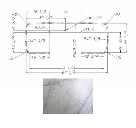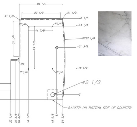 Countertop - Island Top - AE2993RLF/AS2992RLF - 24 1/4" x 64 1/4" - w/Farm Sink Cutout - C2 - w/Buildup - Baha Quartz