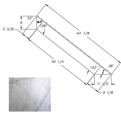 Countertop - Kitchen Top - 39.716" x 48 7/8" - Pressed - MDF - C2 - WW01 - w/Buildup - Arabesque Crystal