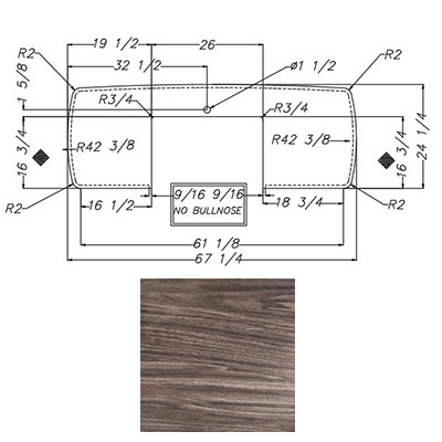 Countertop - Kitchen Top - 1 1/4" x 24 1/4" x 67 1/4" - Pressed - MDF - C2 - WW01 - w/Buildup - 130-2099a - Late Night