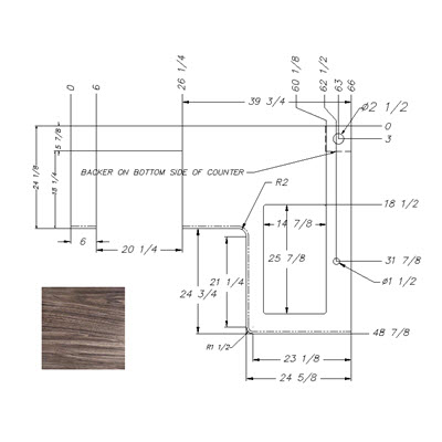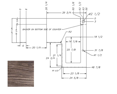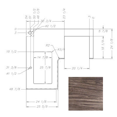 Countertop - Kitchen Top - 1 1/4" x 39.716" x 48 7/8" - Pressed - MDF - C2 - WW01 - w/Buildup - 130-2145a - Late Night