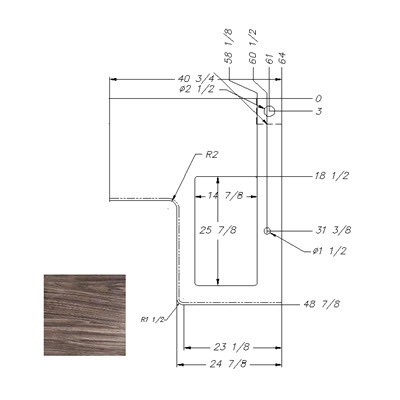 Countertop - Flip Up Top - 15" x 20 5/8" - Pressed - MDF - C2 - WW01 - 130-2010 - Baha Quartz