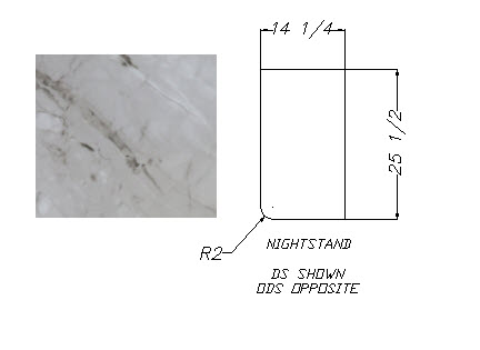 Countertop - Nightstand Top - DS - 14 1/4" x 25 1/2" - C2 - WW01 - Melamine Back - Baha Quartz - Top 130-2063