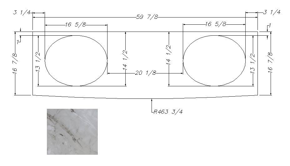 Countertop - Lav Top - AS3172/AE3173 - 17 7/8" x 59 7/8" - w/2 Sink Cutouts - C2 - WW01 - w/Buildup - Baha Quartz