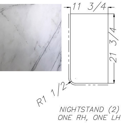 Countertop - Nightstand Top - RH - 11 3/4" x 21 3/4" - C2 - WW01 - Melamine Back - Baha Quartz - 130-2208
