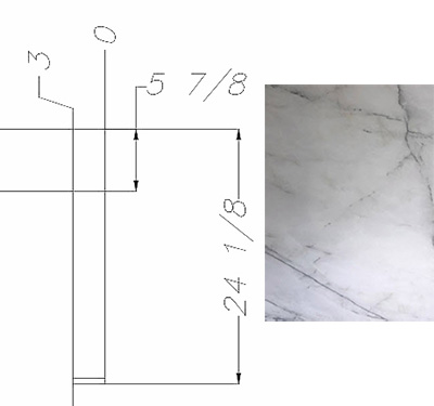 Countertop - Range Arm - 1 1/4" x 3" x 24 1/8" - C2 - WW04 - w/Buildup - Baha Quartz - Top 130-2005