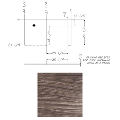 Countertop - Nightstand Top - RH - 11 3/4" x 21 3/4" - Pressed - MDF - C2 - WW01 - Melamine Back - Arabesque Crystal - Top 130-2208