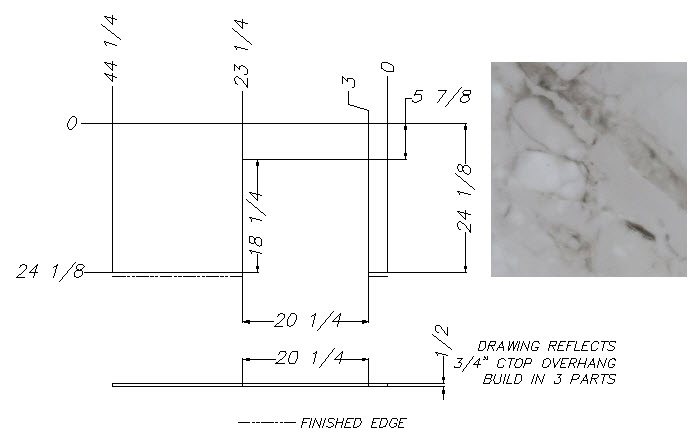 Countertop - Range Top - AS2993RLF/AS2992RLF - 24 1/8" x 44 1/4" - C2 - w/Buildup - Baha Quartz - Furrion Range