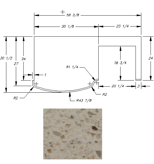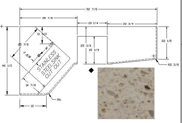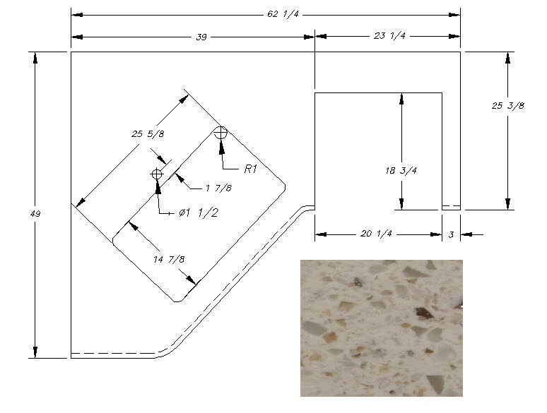 Countertop - Kitchen Top (A) - 26RBS - 1 1/4" x 39" x 49" - Pressed - MDF - C2 - Ash Aggregate - Rev B