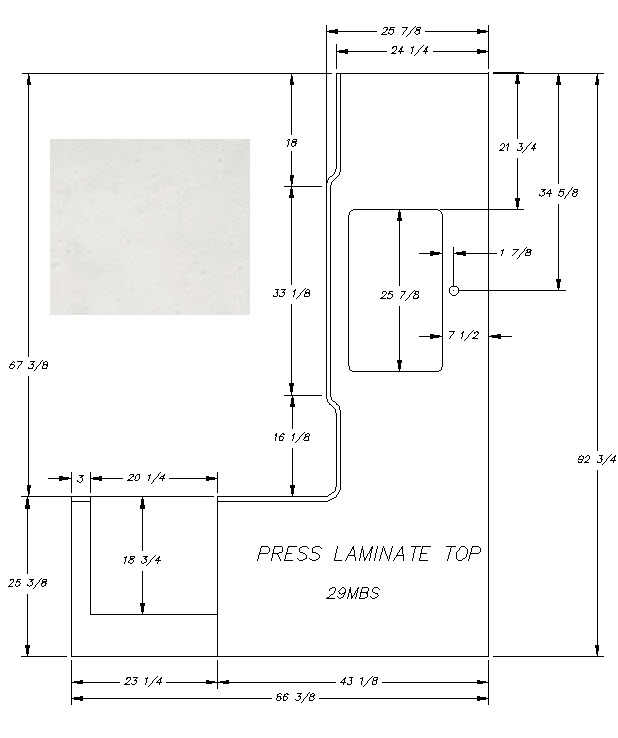 Countertop - Kitchen Sink Top - 29RES - 1 1/4" x 48 1/2" x 50 7/8" - Pressed - MDF - C2 - Libra Lite