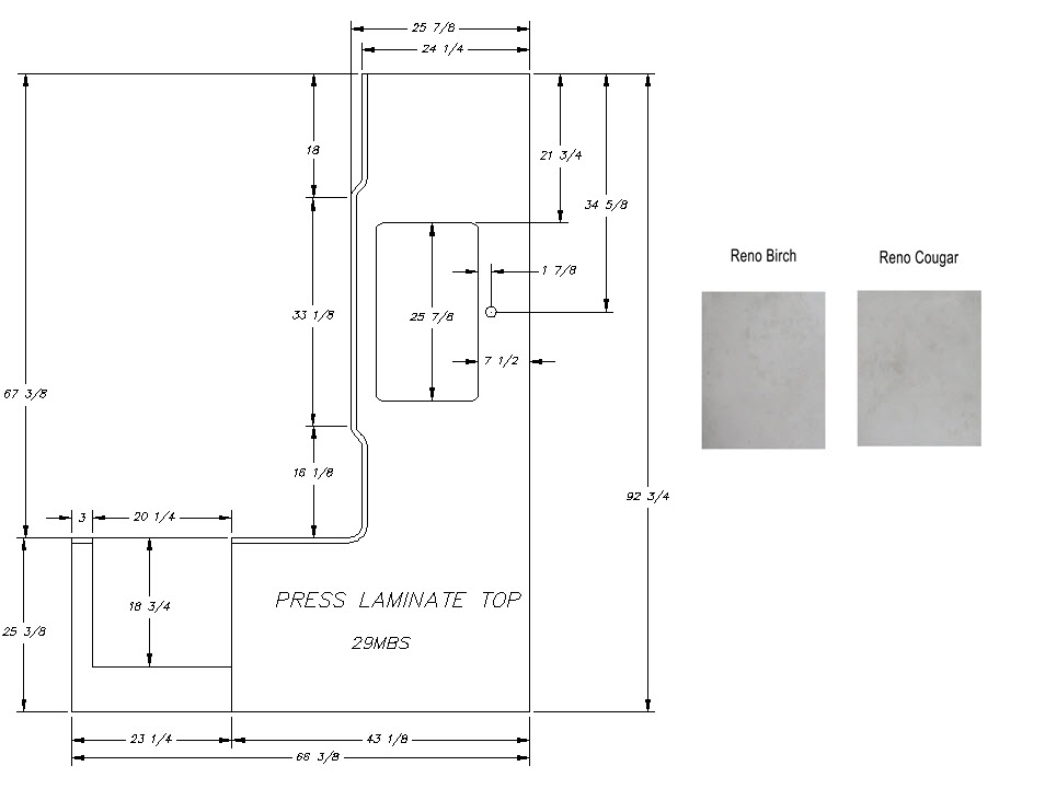 Countertop - Kitchen Top (A) - 29MBS - 43 1/8" x 92 3/4" - Pressed - MDF - C2 - E-792 8539600 - Reno Cougar