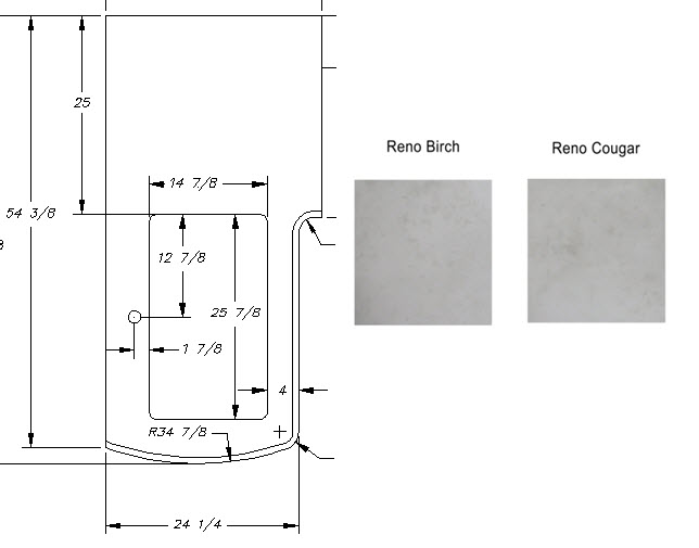 Countertop - Kitchen Top (A) - 24RDS - 1 1/4" x 27 1/4" x 56 3/8" - Pressed - MDF - C2 - E-792 8539600 - Reno Cougar