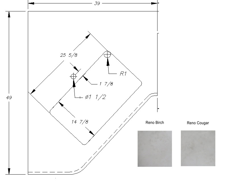 Countertop - Kitchen Top (A) - 26RBS - 1 1/4" x 39" x 49" - Pressed - MDF - C2 - E-792 8539600 - Reno Cougar