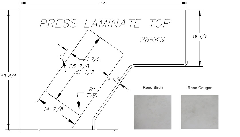 Countertop - Kitchen Top (A) - 26RKS - 1 1/4" x 40 3/4" x 57" - Pressed - MDF - C2 - E-792 8539600 - Reno Cougar
