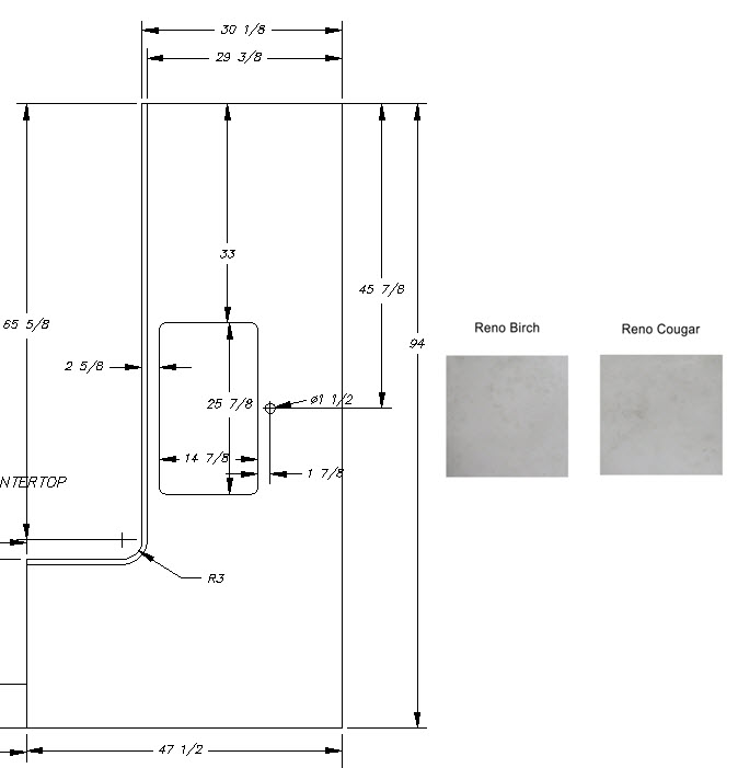 Countertop - Kitchen Top (A) - 22RBS - 1 1/4" x 38 7/8" x 46 1/2" - Pressed - MDF - C2 - E-792 8539600 - Reno Cougar