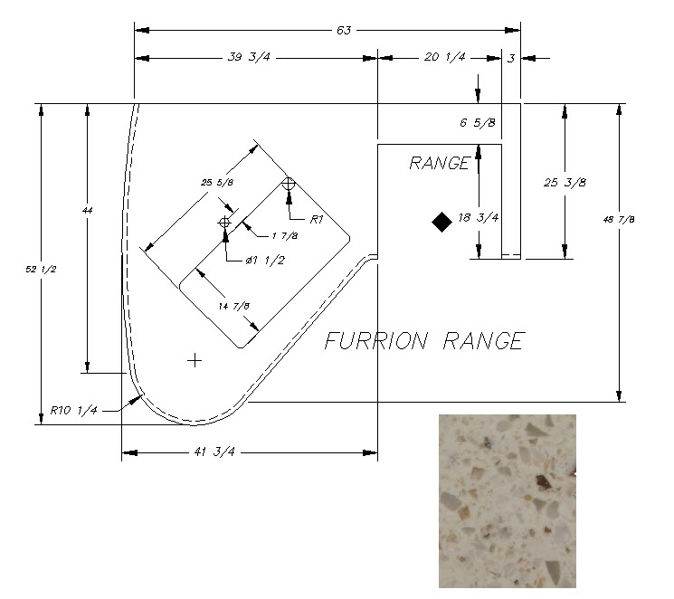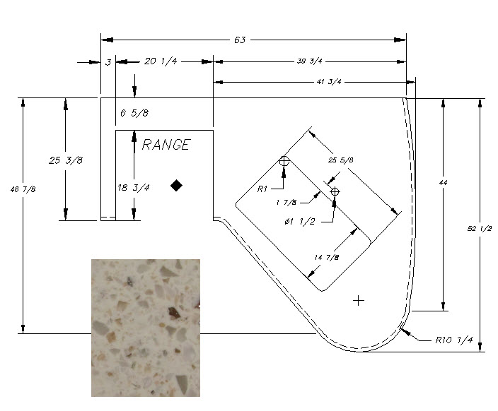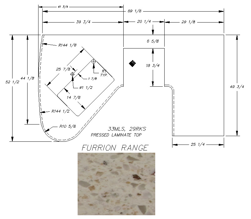 Countertop - Kitchen Top (A) - 29RLD - 1 1/4" x 41 3/4" x 52 1/2" - Pressed - MDF - C2 - Libra Lite - Furrion Range