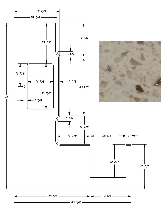 Countertop - Kitchen Top (A) - 30RKD - 1 1/4" x 43 1/8" x 94" - Pressed - MDF - C2 - Ash Aggregate - Rev B