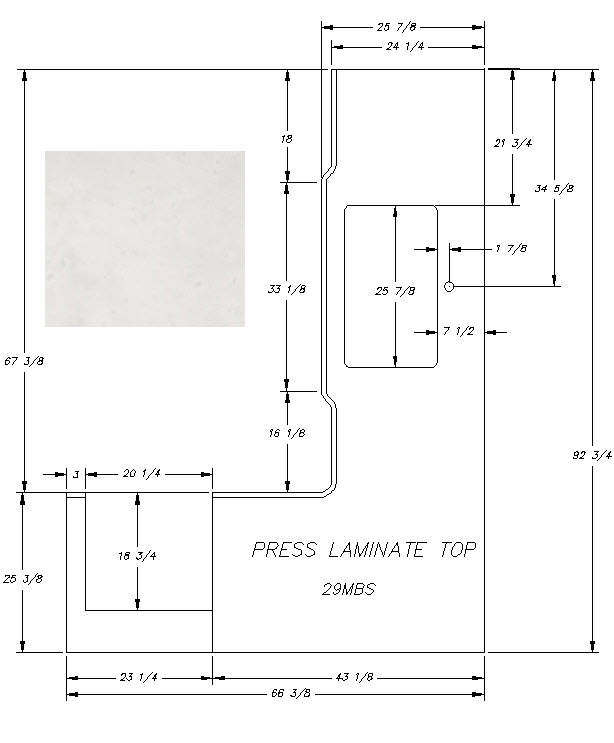 Countertop - Kitchen Top (B) - 29MBS - 23 1/4" x 25 3/8" - Pressed - MDF - C2 - E-792 8539600 - Reno Cougar