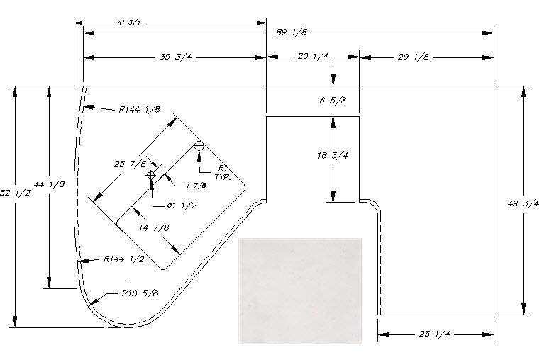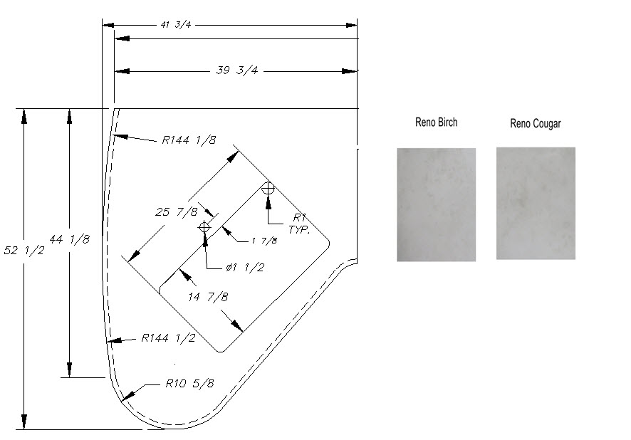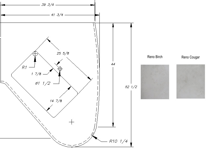 Countertop - Kitchen Top (A) - 29RLD - 1 1/4" x 41 3/4" x 52 1/2" - Pressed - MDF - C2 - E-792 8539600 - Reno Cougar