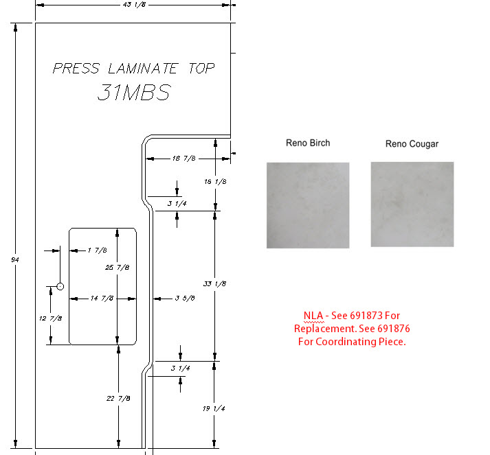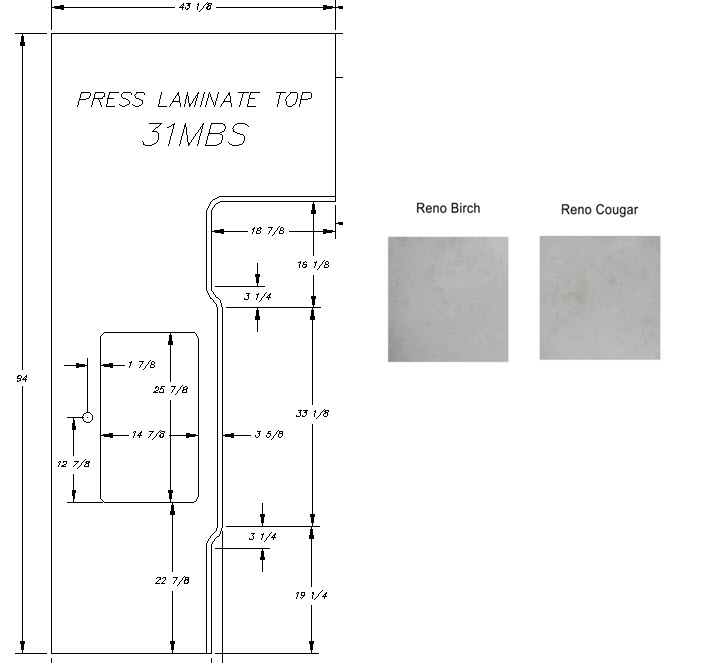 Countertop - Kitchen Top (A) - 31MBS - 1 1/4" x 43 1/8" x 94" - Pressed - MDF - C2 - E-792 8539600 - Reno Cougar