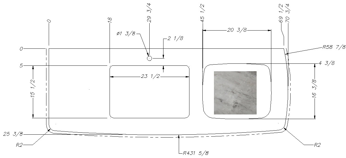 Countertop - Entry Cabinet Top - 179E - 18 1/2" x 23 1/4" - C2 - WW01 - Calcutta Warm
