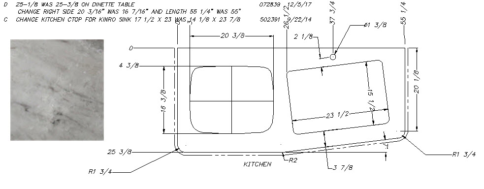 Countertop - Kitchen Top - 177RB - 23 1/8" x 52 1/2" - C2 - WW01 - FLAT - Calcutta Warm