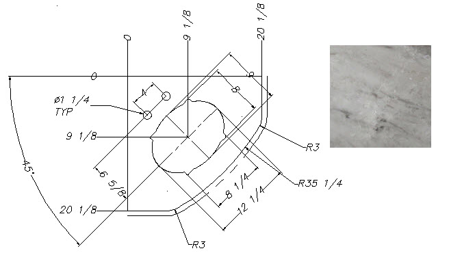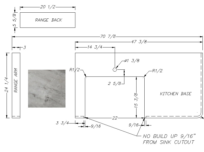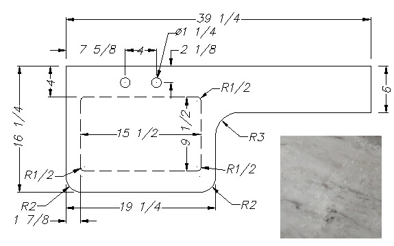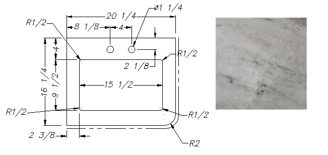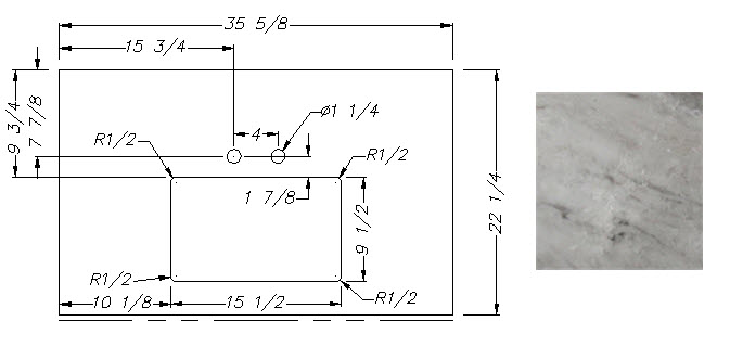 Countertop - Kitchen Top - 3021RBDS - 36 3/4" x 43 13/16" - w/Farm Sink Cutout - C2 - WW01 - w/Buildup - Calacutta Warm