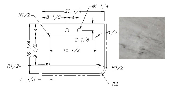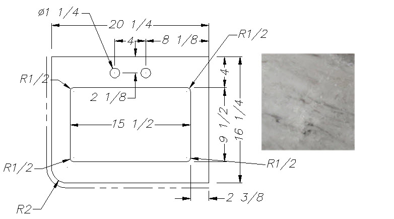 Countertop - Lav Top - 172E/186S - 16 1/4" x 20 1/4" - w/Sink Cutout - C2 - WW01 - White Mel - Calcutta Warm