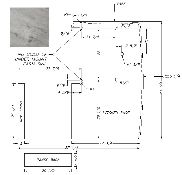 Countertop - Kitchen Top - 296BHSL - 29 3/4" x 51 1/4" - w/Farm Sink Cutout - C2 - WW01 - w/Buildup - P4-0236a - Calacutta Warm