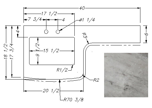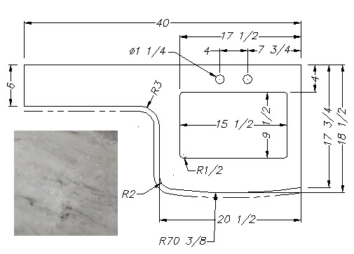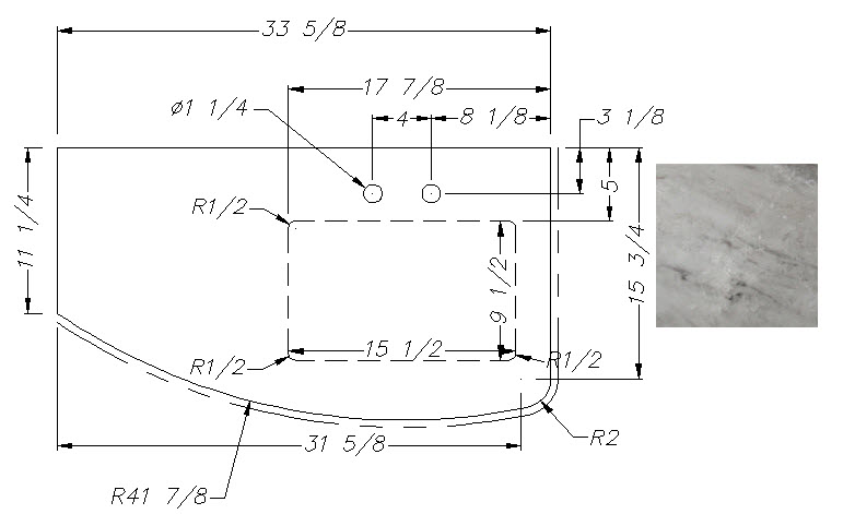 Countertop - Lav Top - RH - 332BHSL - 17 3/4" x 40" - C2 - WW01 - White Mel - Calcutta Warm
