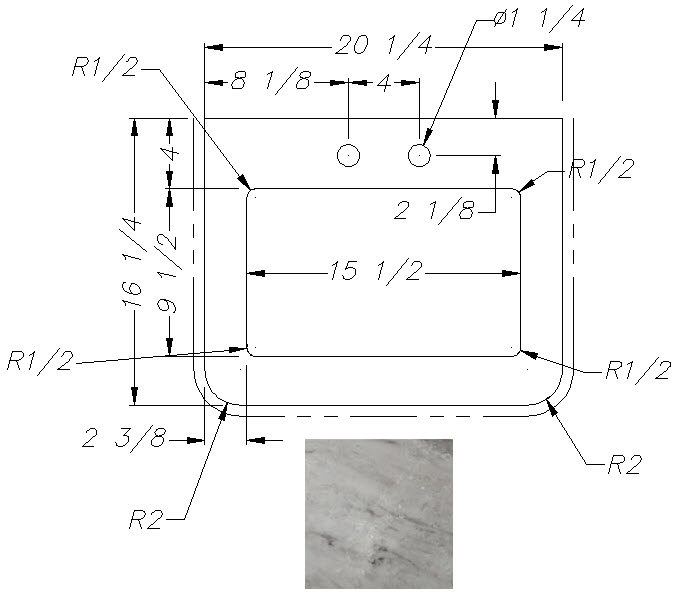 Countertop - Lav Top - 283BHSL/198BHSL - 16 1/4" x 20 1/4" - w/Sink Cutout - C2 - WW01 - White Mel - Calcutta Warm
