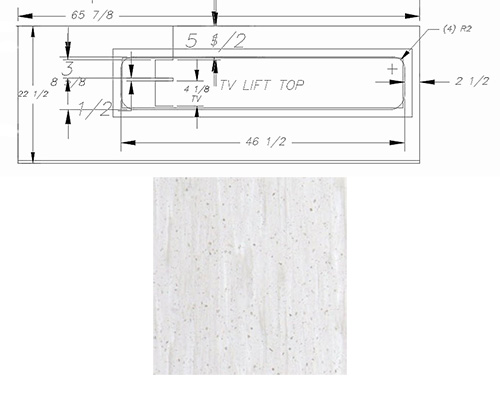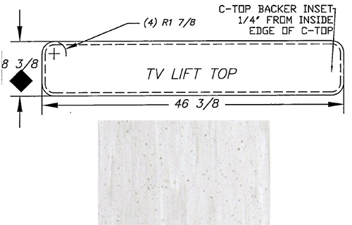 Countertop - TV Lift Top - 46 3/8" x 8 3/8" - C2 - Eased Edge - Durasein Bianca Sabbia