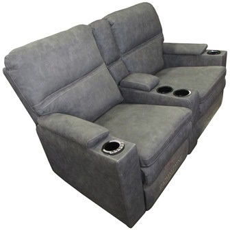 Sofa - Theater Seating - Quantum - 62" - Heat/Massage/Blue Lights - RAF Cupholder - 5" Domestic Console - Joyfull Charcoal - T270 Silver