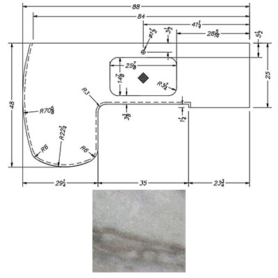 Countertop - Kitchen Top - KH8528 - 42 1/8" x 50 7/8" - Pressed - MDF - C2 - w/Kilz - w/Buildup - 131-2477 - Heath Marble Stone