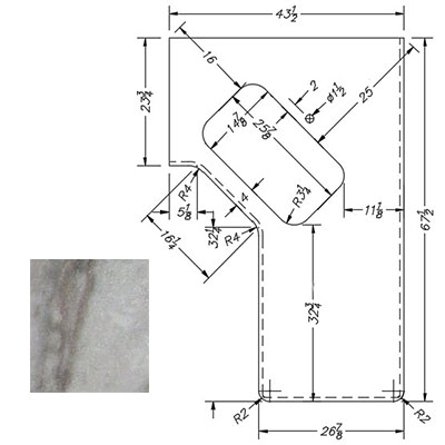 Countertop - Kitchen Top - KH8528 - 43 1/2" x 67 1/2" - Pressed - MDF - C2 - w/Kilz - w/Buildup - 130-2334c - Heath Marble Stone