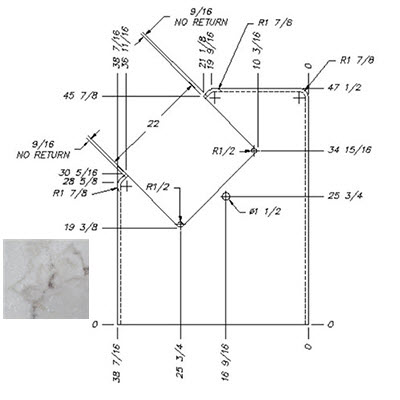 Countertop - Kitchen Top - 2825RK - 38 7/16" x 47 1/2" - w/Farm Sink Cutout - C2 - WW04 - Pencil Edge - w/Buildup - Calacutta Warm-GL