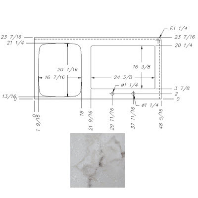 Countertop - Kitchen Top - 1905BH - 23 7/16" x 48 5/16" - C2 - WW04 - w/Buildup - Calacutta Warm-GL