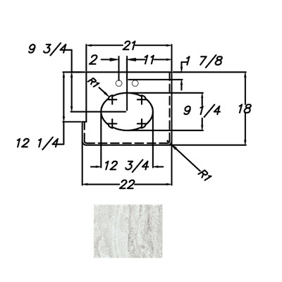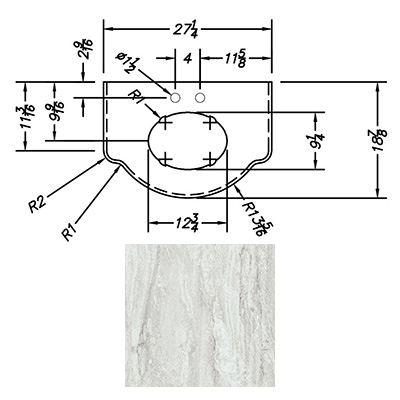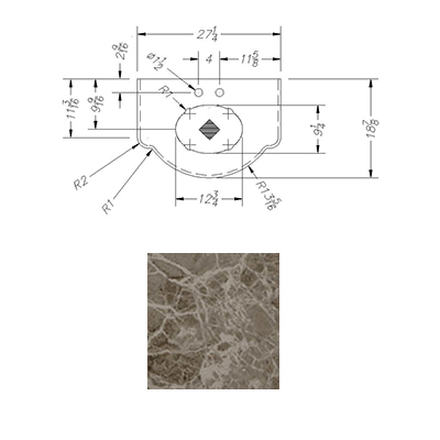 Countertop - Lav Top - VL320IK/VL3201IK - 1 1/4" x 18 7/8" x 27 1/4" - C2 - MDF - Pressed - 1/2" Round Over - Heath Marble + EM Earl Grey Marble
