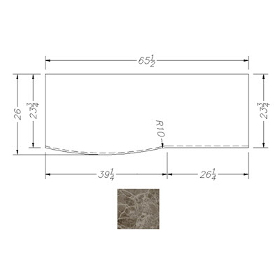 Countertop - Range Top - VL34RE - 1 1/4" x 26" x 65 1/2" - Pressed - MDF - C2 - Heath Marble + EM Earl Grey Marble - 9825-1543