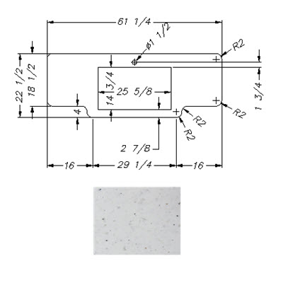 Countertop - Kitchen Top w/Sink Cutout - VL3860RL - w/Single Faucet Hole - Eased Edge - Double Lip - Hi Macs - 3/8" Winter Stone