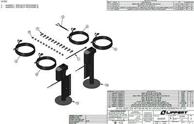 Jack - Leg Cylinder - LH - 2 1/2" - 14K - w/9" Foot Pad - Silver - Level Up System - 6 Mounting Holes - Clear - After 6/20