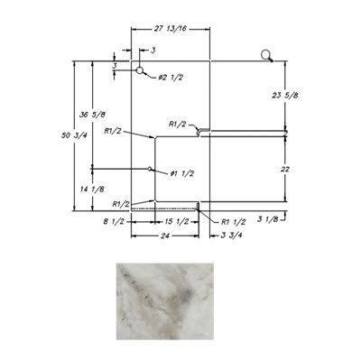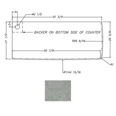 Countertop - Kitchen Top - 1 1/4" x 27 13/16" x 50 3/4" - Pressed - MDF - C2 - WW01 - w/Buildup - 131-2959 - Lightning Silver