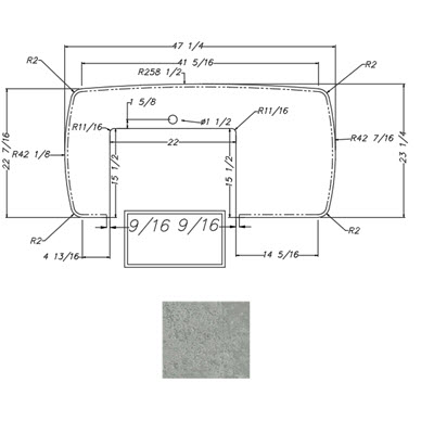 Countertop - Kitchen Top - 1 1/4" x 41 3/4" x 48 7/8" - Pressed - MDF - C2 - WW01 - w/Buildup - 130-2145 - Concrete Urban Grey