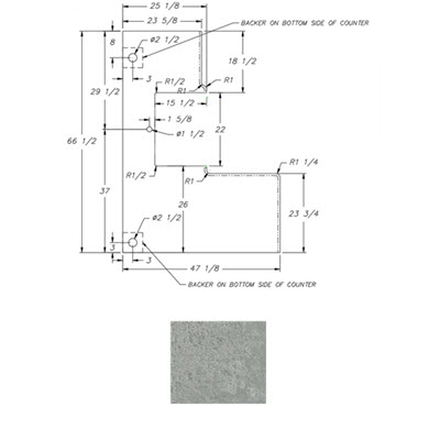 Countertop - Kitchen Top - 1 1/4" x 47 1/8" x 66 1/2" - Pressed - MDF - C2 - WW01 - w/Buildup - 131-2886a - Concrete Urban Grey