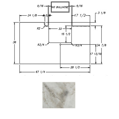 Countertop - Kitchen Top - 1 1/4" x 38" x 67 1/4" - Pressed - MDF - C2 - WW01 - w/Buildup - 131-2556b - Lightning Silver