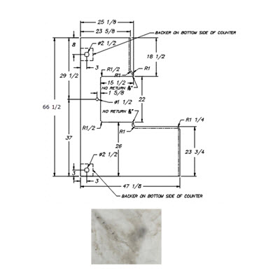 Countertop - Kitchen Top - AA230ML - 1 1/4" x 47 1/8" x 66 1/2" - Pressed - MDF - C2 - WW01 - w/Buildup - 131-2886a - Lightning Silver