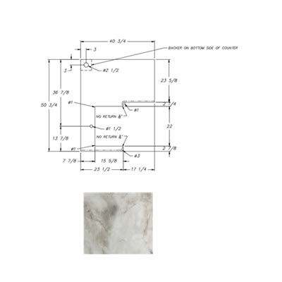 Countertop - Kitchen Top - 1 1/4" x 39 7/8" x 43 1/4" - Pressed - MDF - C2 - WW01 - w/Buildup - 131-3042 - Lightning Silver